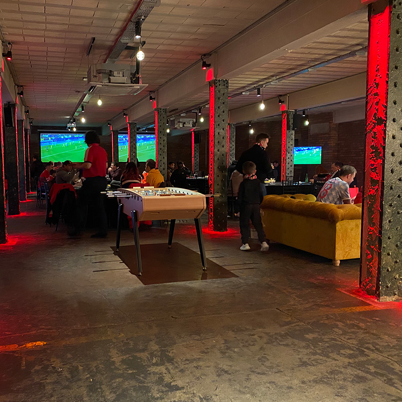 The Kit Room at Manchester United refers to a hospitality lounge in the stadium’s northwest quadrant. It offers padded seating, complimentary pre-match hot food, drinks from a cash bar, and entertainment, all themed around historical United kits. This suite has floor to ceiling windows creating a light and airy atmosphere, overlooking famous Stretford End supporters. Guests have access to the suite from three hours before kick-off until one hour after the match.